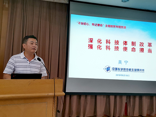 吴宁同志以“深化科技体制改革、强化科技使命担当”为题,从我国科技体制改革的历史沿革、我国科技体制的现状及问题、国家深化科技体制改革的重大举措、我院深化科技体制改革的战略部署、我所深化科技体制改革的积极响应等五个方面进行阐述。