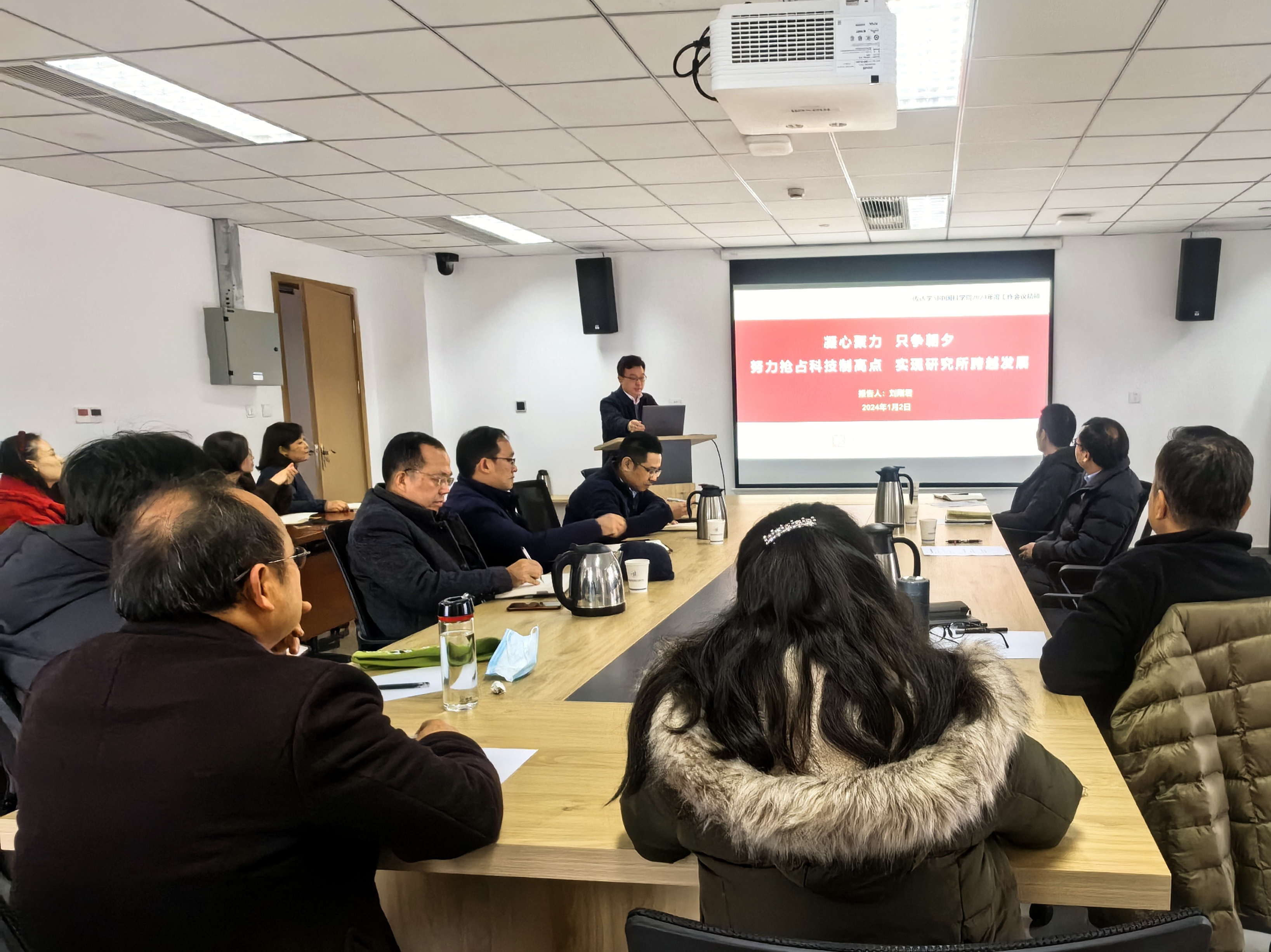 刘刚君作《凝心聚力 只争朝夕,努力抢占科技制高点 实现研究所跨越发展》专题报告,全面传达了院2024年度工作会议主要精神,重点传达关于认真学习贯彻落实习近平总书记重要指示批示精神的相关要求,特别强调抢占科技制高点对我国高水平科技自立自强的重大战略意义、对中国科学院和研究所改革创新发展的重大历史意义和对研究所进一步强化职责使命的重大现实挑战。他指出,抢占科技制高点是习近平总书记和党中央赋予我们的重大政治任务,是新时期统领研究所改革创新发展各项工作的总目标、总任务、总要求。他要求,全所干部职工要进一步提高政治站位、深化思想认识,深刻理解抢占科技制高点的重大意义,切实增强使命感、责任感、紧迫感。各部门、各党支部要对标习近平总书记重要指示批示精神和院党组部署要求,紧紧围绕抢占科技制高点这一核心任务,紧密结合实际,深入研讨,集思广益,勇找差距和不足,提出贯彻落实的工作思路和重点举措。凝练形成一批重大任务,努力取得一批关键性、原创性、引领性重大科技成果,抢占一批科技制高点,为实现高水平科技自立自强和建设科技强国再立新功。