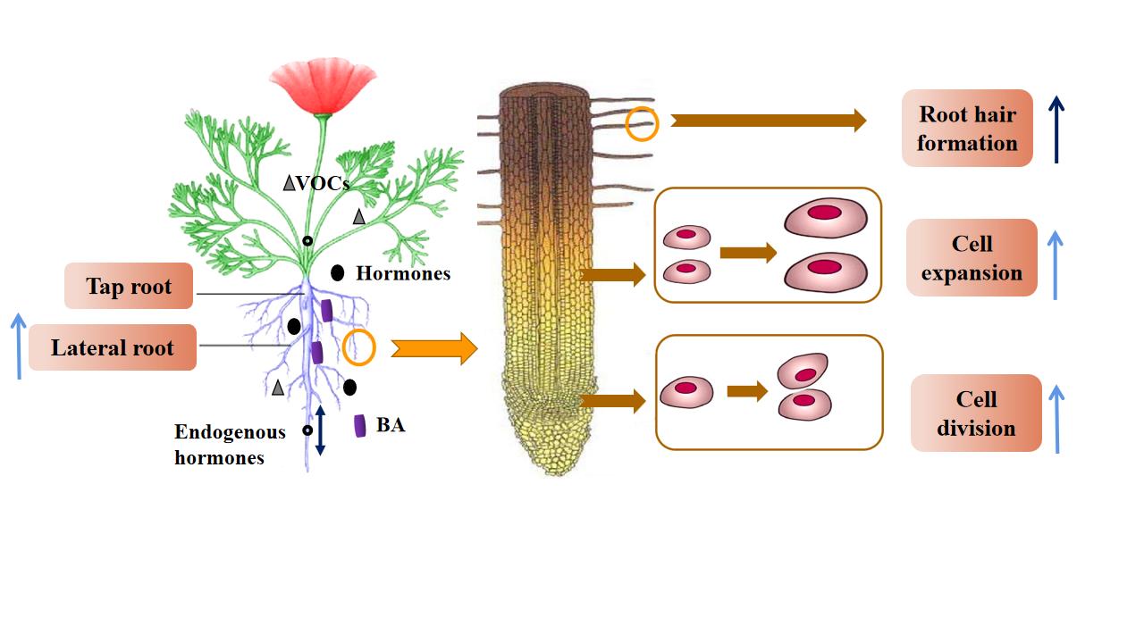 2. BA通过产生植物激素和挥发性有机物质促进植物细胞和根系的生长