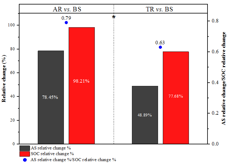 图1吸收根和运输根根际相对于非根际增加的SOC中氨基糖的比例. AS,氨基糖;AR,吸收根;BR,运输根。