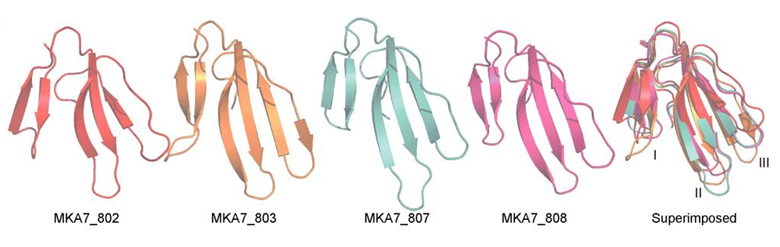不同于在毒腺大量表达的MKT-3FTX基因,4个银环蛇MKA-3FTX中只有1个受到正选择的拷贝在毒腺活跃表达,其余3个基因拷贝在肾脏中的表达相对更高(图3)。此外,相比其它MKA-3FTX旁系同源,毒腺中表达的MKA-3FTX在二级结构上多出一个beta片层,进一步提示了该亚家族功能上的分化(图4)。