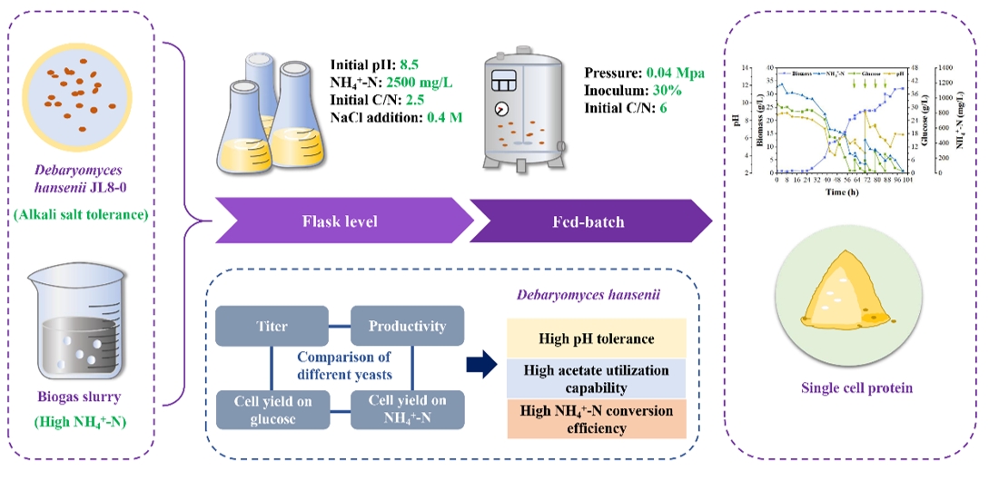成都生物所在耐碱汉逊德巴利酵母利用高氨氮沼液生产单细胞蛋白研究中获进展