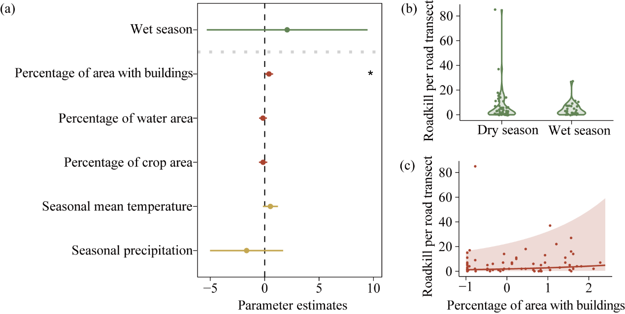 道路致死(即车辆与动物直接碰撞导致的动物个体死亡)是道路对野生动物最直接、最广泛的影响,每年道路致死的野生动物个体数以亿计。因此,掌握野生动物的道路致死格局及其影响因素已成为全球道路生态学的重要议题,能为实施相关的缓解措施提供科学支撑。