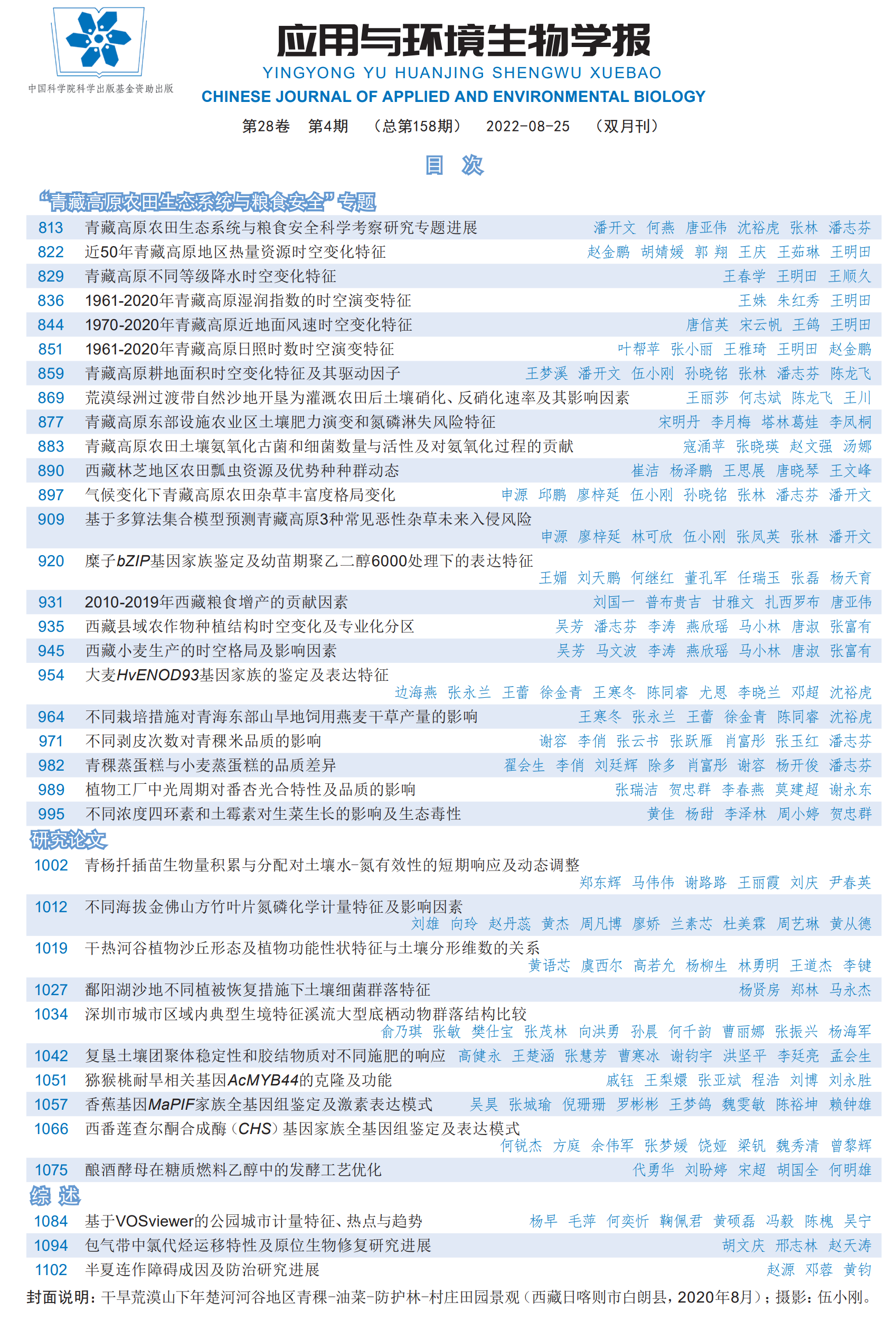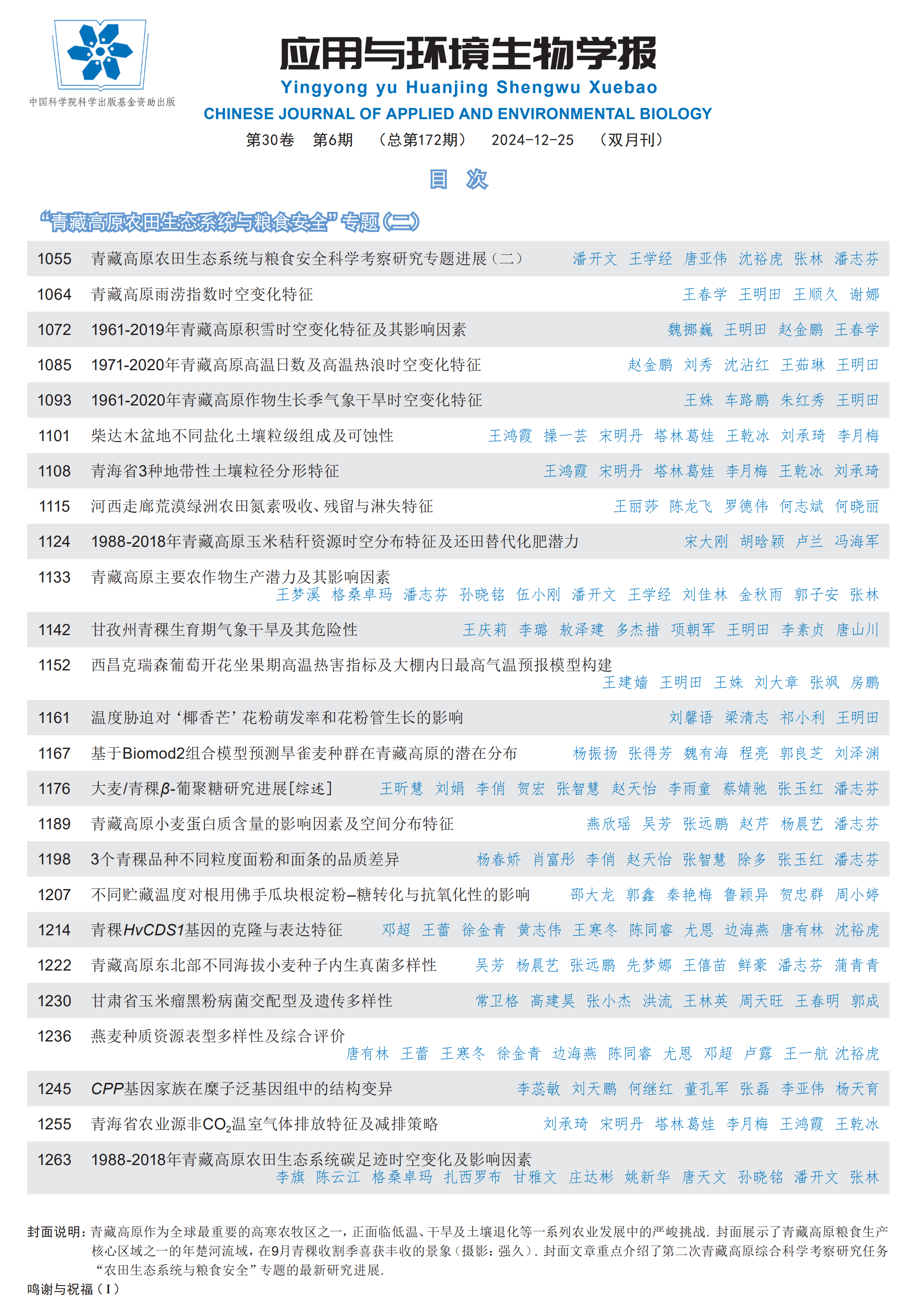 “青藏高原农田生态系统与粮食安全”专题成果在《应用与环境生物学报》2022年第4期以专刊形式出版,“青藏高原农田生态系统与粮食安全”专题(二)成果在《应用与环境生物学报》2024年第6期以专刊形式出版,均由第二次青藏高原综合科学考察研究项目(2019QZKK0303)资助。