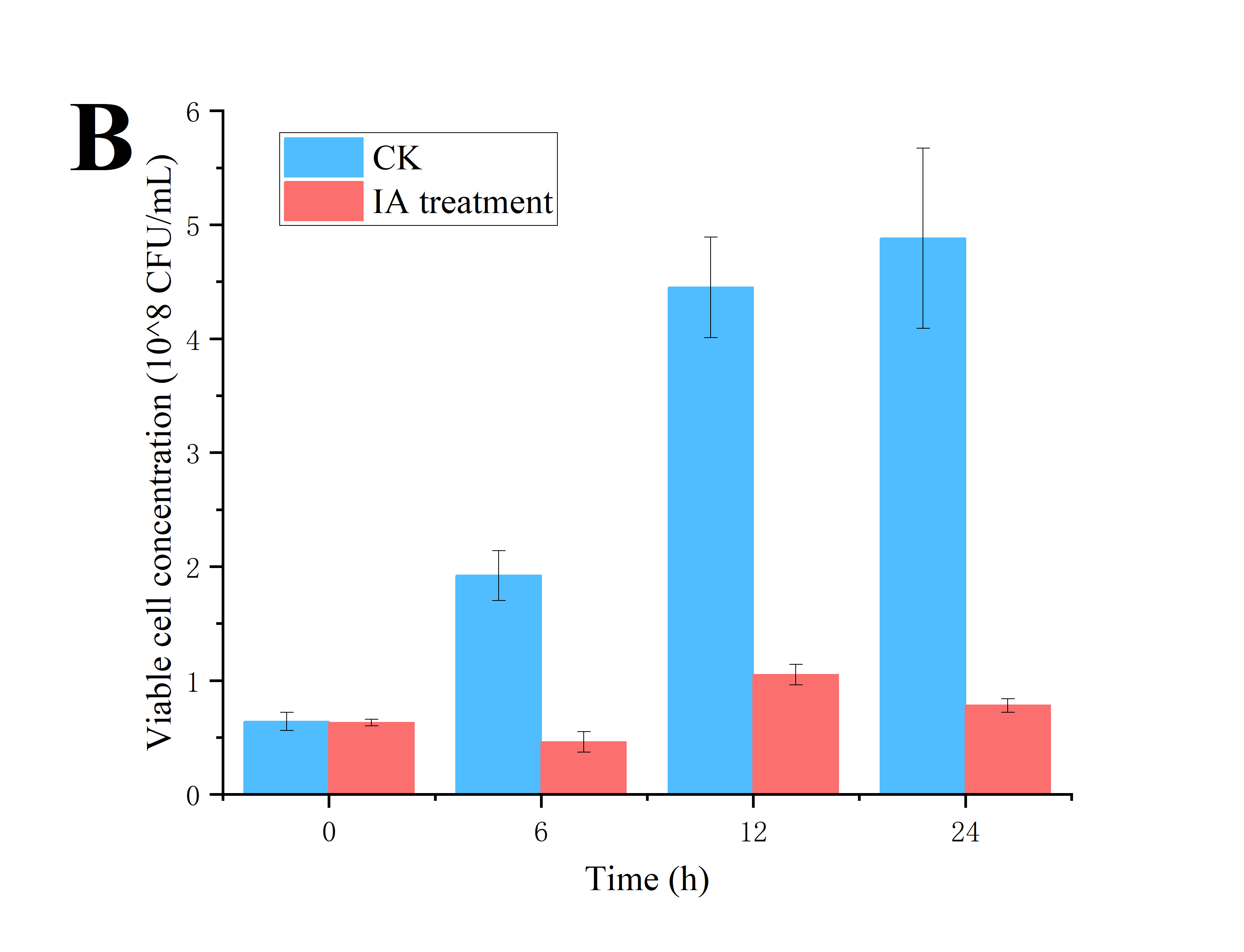 研究团队选取酿酒酵母(Saccharomyces cerevisiae)、克鲁维毕赤酵母(Pichia kluyveri)、汉逊德巴利酵母(Debaryomyces hansenii)和费比恩塞伯林德纳氏酵母(Cyberlindnera fabianii)等4种典型FSY,通过抑菌圈实验、最小抑菌浓度(MIC)测定、最小杀菌浓度(MFC)测定和细胞生长抑制实验发现:IA对4种酵母均表现出显著抑制效果。