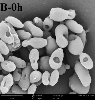 图3. 2×MIC浓度IA不同时间处理对S. cerevisiae(A)和P. kluyveri(B)细胞形态的影响