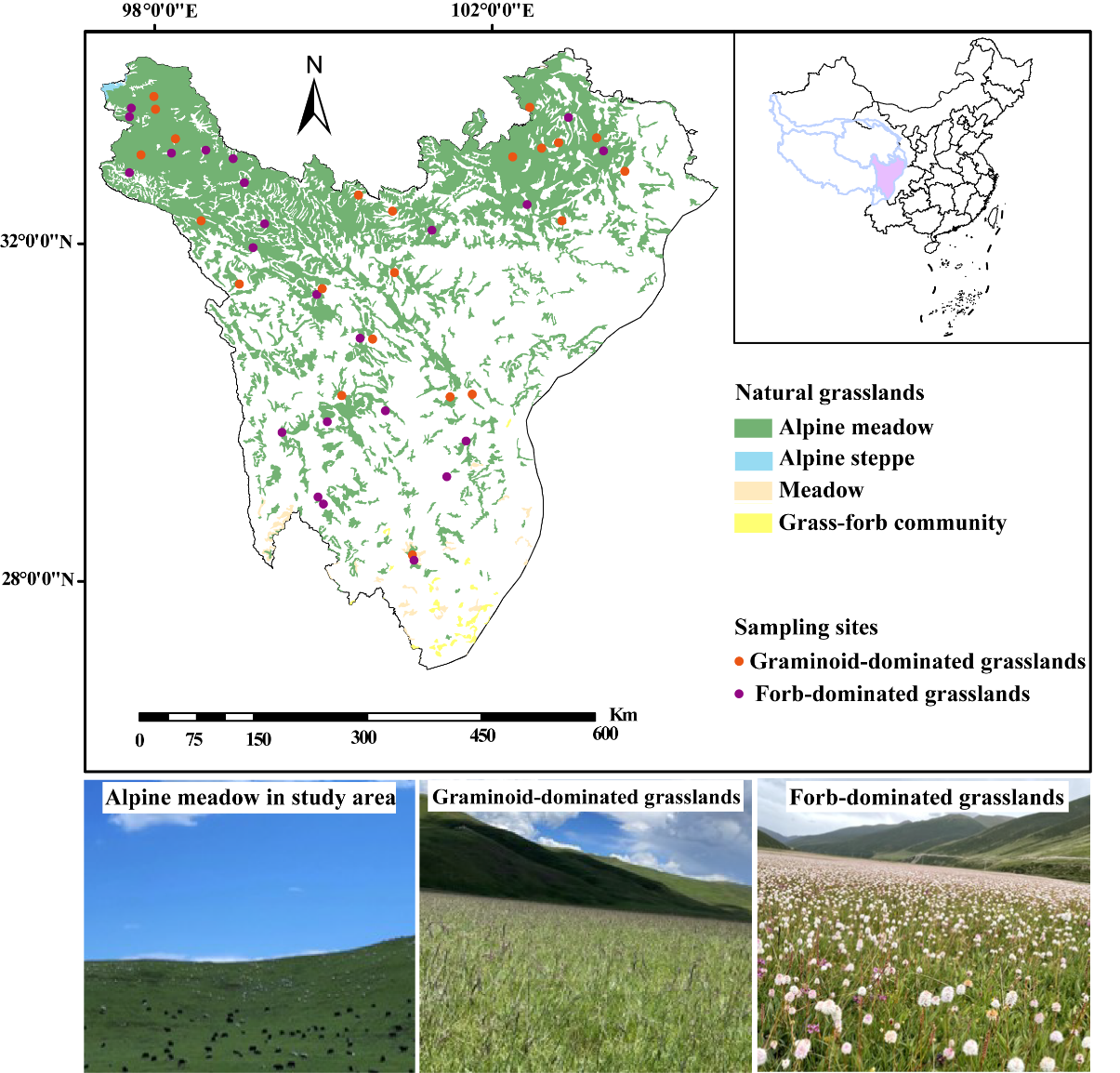 草地生态系统为畜牧业提供了重要的牧草供给功能。其中,牧草品质由其化学成分决定,直接影响牲畜的生长;品质储量是整合牧草产量和品质的综合指标,决定着牲畜产品的数量及质量。青藏高原东缘是我国五大天然牧区之一,该区天然牧草供给功能对当地畜牧业发展至关重要。然而,关于该区牧草品质、品质储量的变异及影响因素尚不清楚。