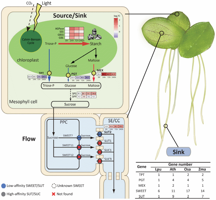 "营养限制+理化调控+高浓度CO?补充"技术处理下少根紫萍的糖合成与转运