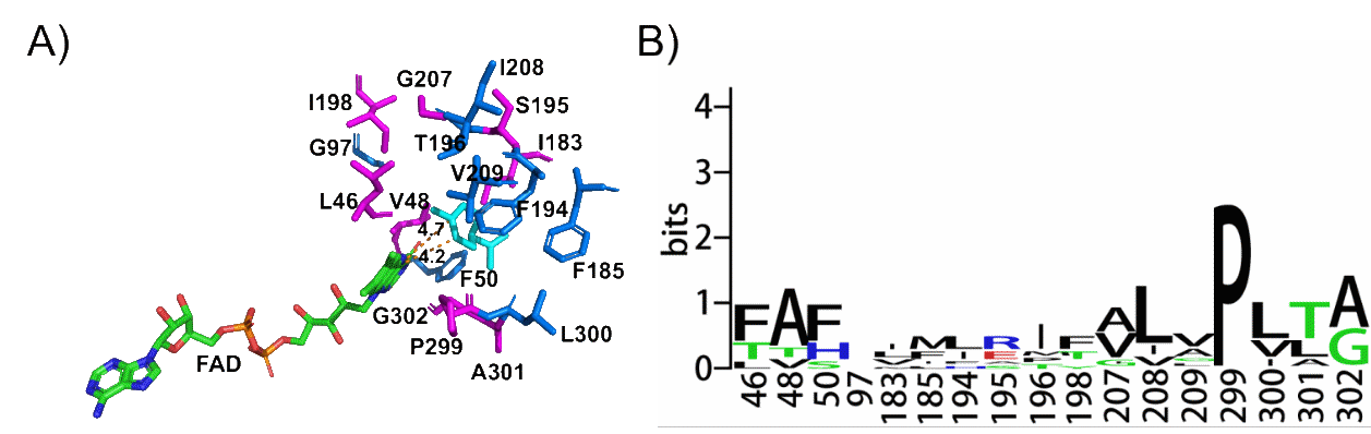 图1 SgStyA活性位点结构分析及关键残基保守性分析