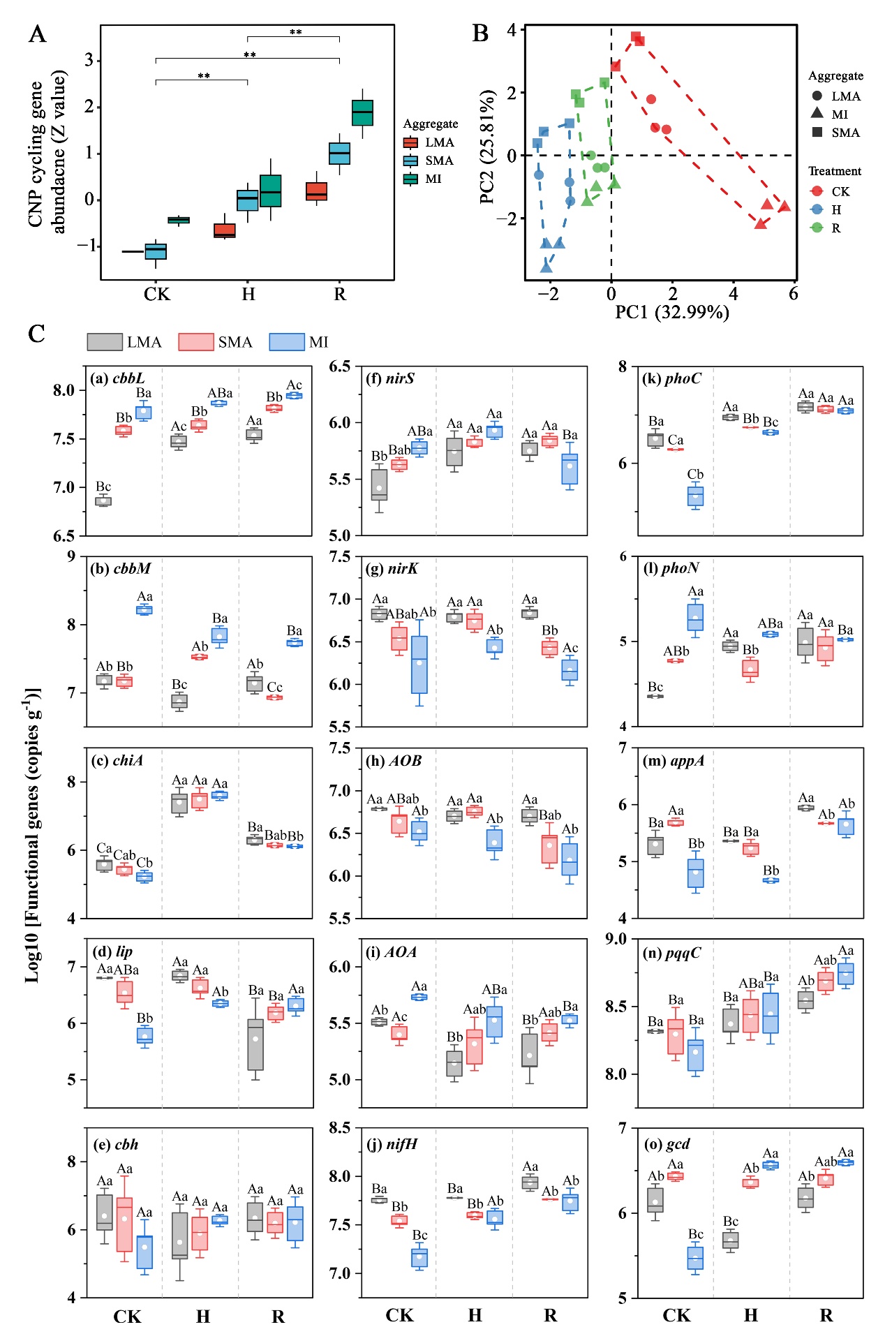 图2 根和菌丝活动对土壤团聚体中功能基因丰度的影响