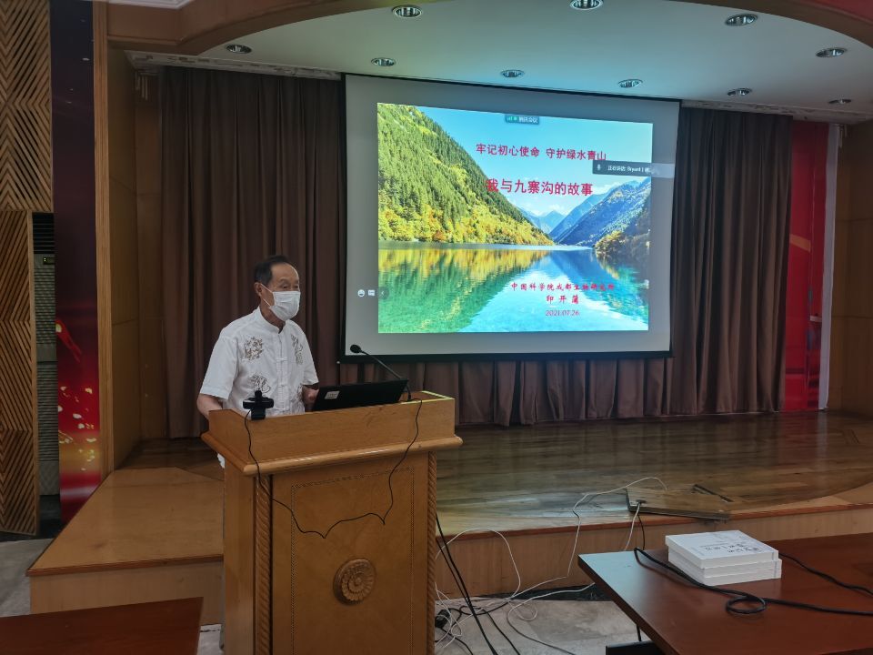 印开蒲研究员作《牢记初心使命 守护绿水青山 我与九寨沟的故事》的专题报告