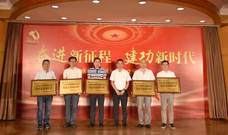 所长吴宁,党委书记、副所长叶彦向老党员代表陈安刚、范成英同志颁发了“光荣在党50年”纪念章。党委委员对“四强”党支部、“党员示范项目组”和“党员先锋岗”进行了授牌仪式。8名预备党员进行了入党宣誓仪式。