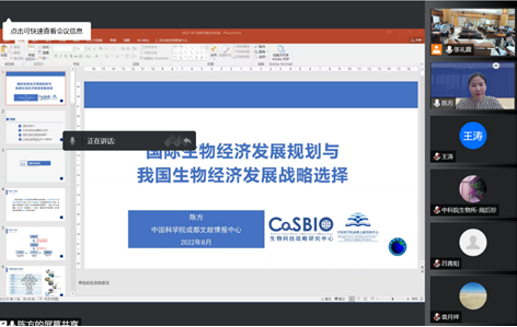 陈方作题为《国际生物经济发展规划与我国生物经济发展战略选择》的报告,她详细讲解了生物经济的定义、国际形势以及我国发展规划。她指出,随着基因组编辑、生物信息分析以及合成生物学等现代生命科学技术快速发展,生物经济正加速成为继信息经济后新的经济形态,当今社会也正在经历从生物技术产业化到生物经济的发展时期,她还指出四川在生物发酵和生物医药领域有非常强的产业化优势,但在生物基材料和生物能源领域还严重缺乏竞争技术。