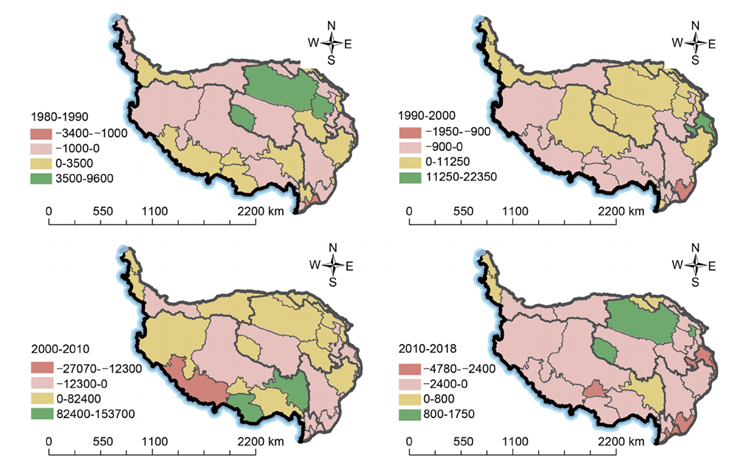 图7 青藏高原各地区耕地面积变化(ΔA/hm2)(应用与环境生物学报, 2022, 28 (4): 859-868)