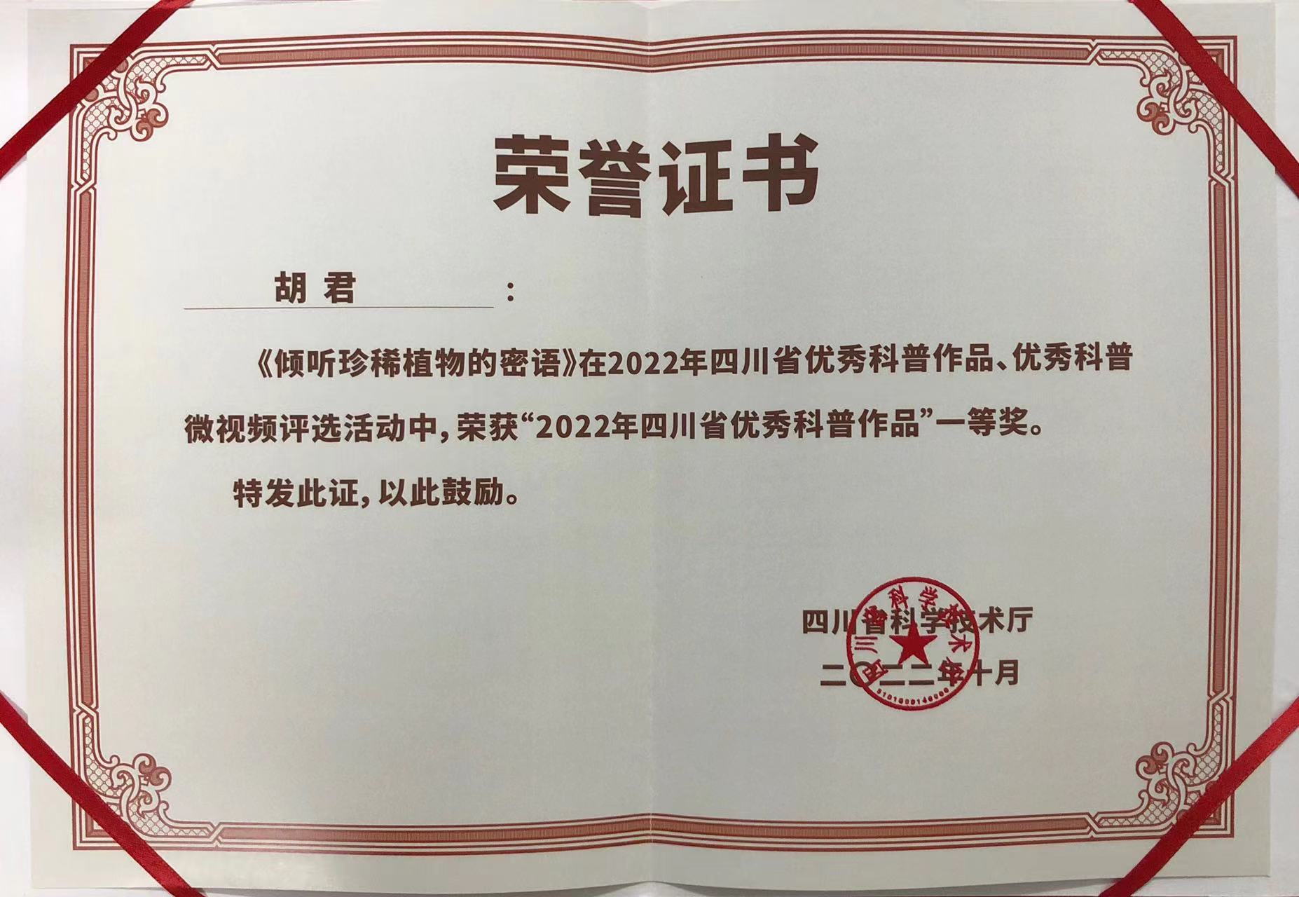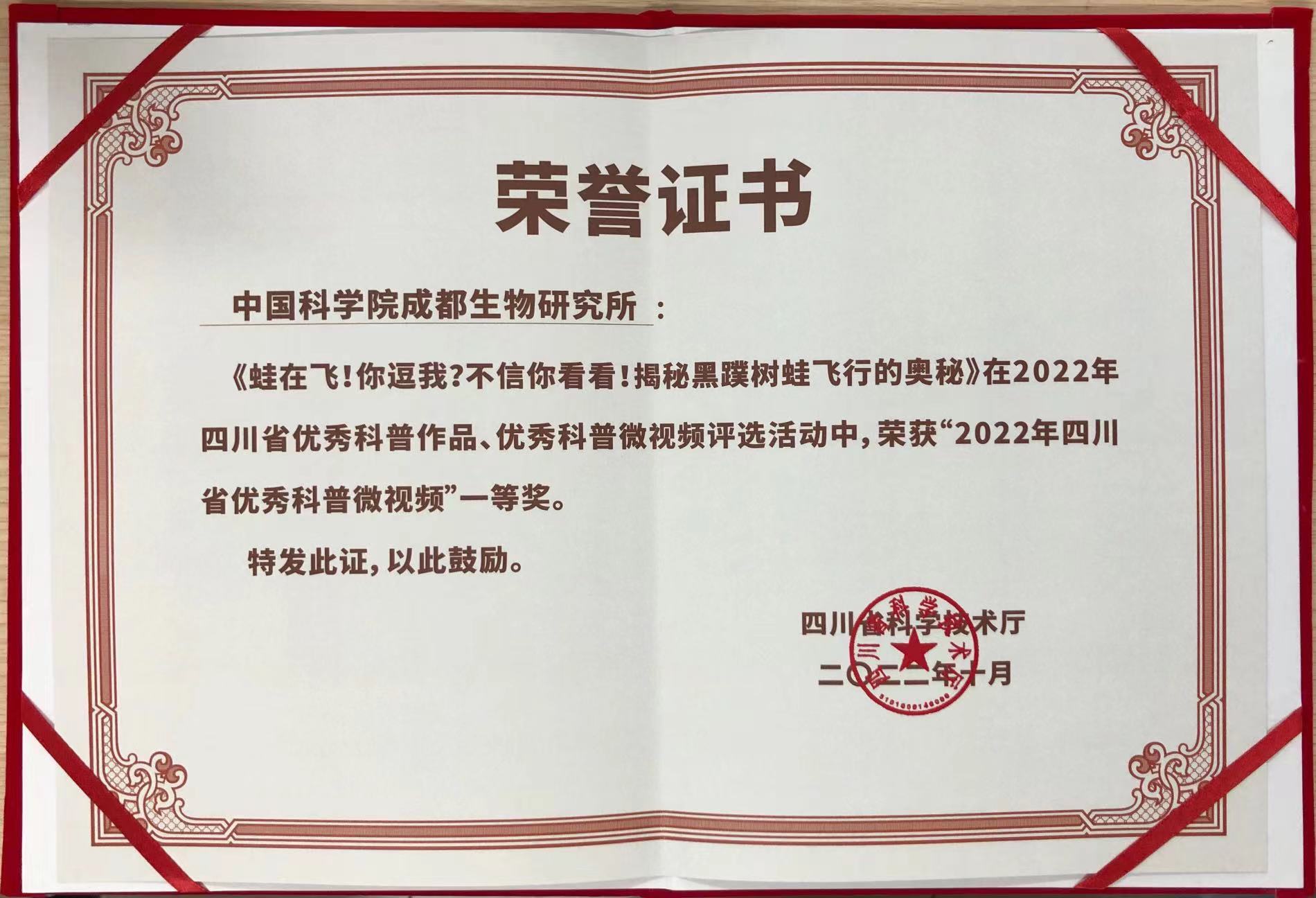 近日,由中国科学院成都生物研究所选送的《揭秘黑蹼树蛙飞行的奥秘》和《倾听珍稀植物的蜜语》分获2022年四川省优秀科普微视频一等奖和优秀科普作品一等奖。本次活动获得了省直部门和各市(州)科技主管部门的高度重视和积极响应,在200多部参赛作品中仅 5部作品分别获得一等奖。
