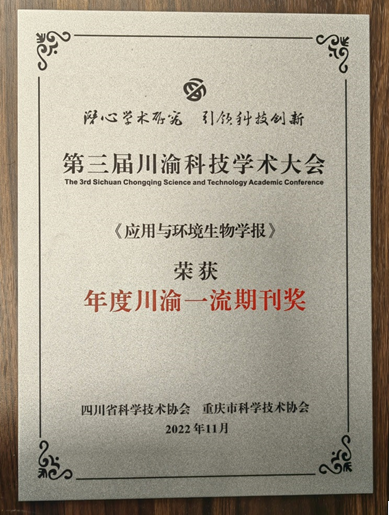 成都生物所主办期刊《应用与环境生物学报》获颁2022年度“川渝一流期刊”奖