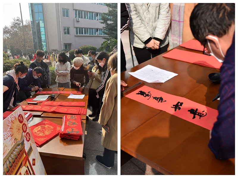 为了增加节日氛围,寻找“年味”,活动还专门邀请了书法老师、糖画师傅为职工写春联、送祝福,这也是全场最受欢迎的传统项目,两个摊位前排满了职工和学生。一幅幅对联、一张张福字,映照着冬日暖阳,鲜红的颜色真是喜庆极了。糖画寓意甜甜蜜蜜,希望每位职工、学生在2023年工作学业顺顺利利,生活和和美美。大家转到糖画后都纷纷拍照留念,有的职工还把糖画带回家与孩子分享。