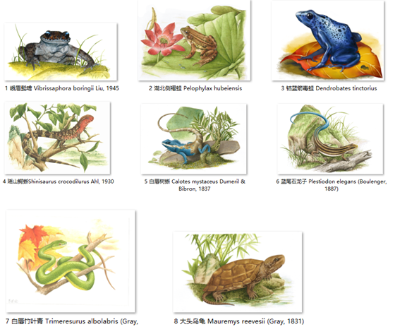 《多彩的爬行动物》 与《多彩的两栖动物》针对两栖爬行动物物种多样性的特点,以动物图鉴融合写意的原创手绘风格,在展现科学之美的同时向公众传播科学知识,弘扬科学正能量和核心价值观。