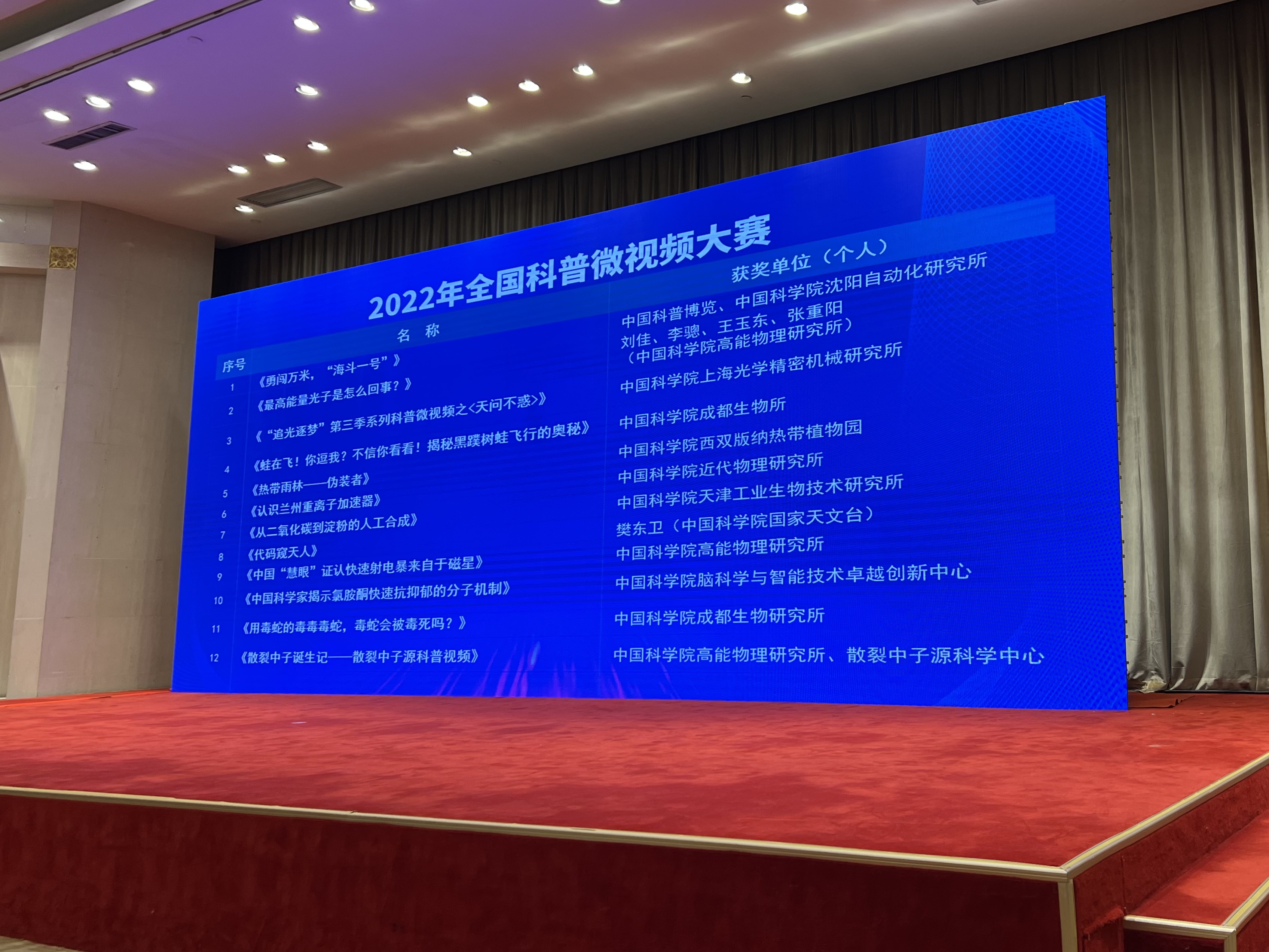成都生物所共获得三项大奖,分别是知识管理中心创作的《黑暗中的真相 刑侦中的鲁米诺》获得第五届全国科学实验展演汇演国赛三等奖,《蛙在飞!你逗我?不信你看看!揭秘黑蹼树蛙飞行的奥秘》和《用毒蛇的毒毒毒蛇,毒蛇会被毒死吗?》入选2022年全国优秀科普微视频,同时成都生物所还被评为科学大院2022年度优秀组织单位。