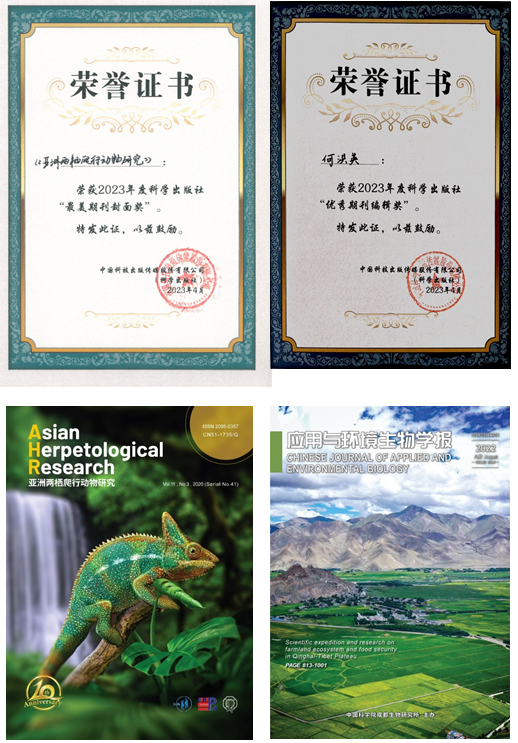 为进一步响应《关于深化改革 培育世界一流科技期刊的意见》的号召,积极参与科技期刊高质量发展和期刊集群化建设,展现研究所期刊品牌和形象,知识管理中心组织期刊《亚洲两栖爬行动物研究》和《应用与环境生物学报》参与了期刊出版单位科学出版社2023年度“最美期刊封面”和“优秀期刊编辑”的评选活动。经初评和终评,基于封面设计的科学性、艺术性及成果创新性,《亚洲两栖爬行动物研究》(英文版)当选“2023年度科学出版社最美期刊封面”;基于期刊工作业绩和出版理论研究,《应用与环境生物学报》编辑部主任何洪英当选“2023年度科学出版社期刊优秀编辑”。