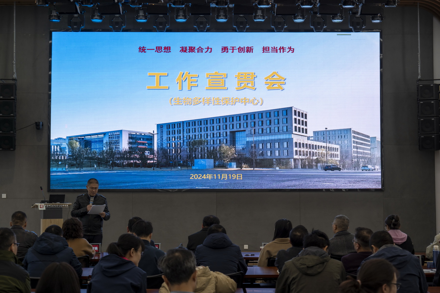 所领导和各管理部门负责人,生物多样性保护中心、生态环境修复中心、生物资源利用中心全体科研人员参会。各中心主任分别主持所在中心的会议。
